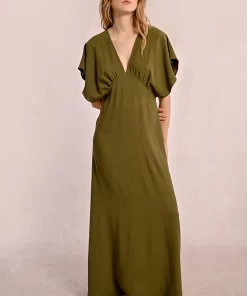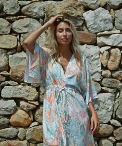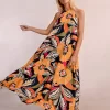 MOLLY BRACKEN Women’s Molly Bracken Asymmetrical Dress At The Bottom, Tropical Print | Khaki Kala