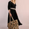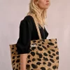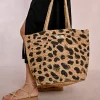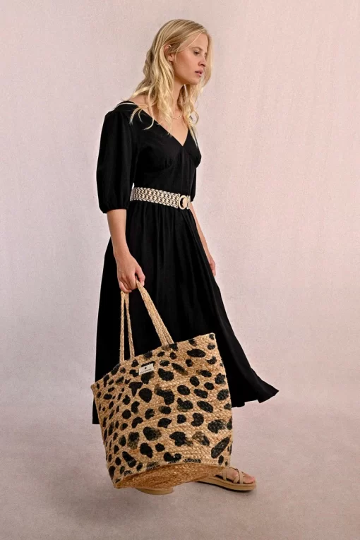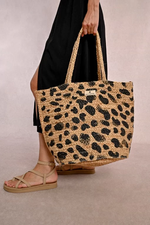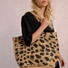MOLLY BRACKEN Women’s Molly Bracken Straw Tote Bag, Leopard Pattern | Black