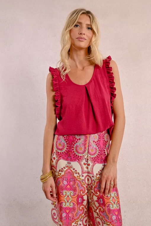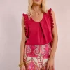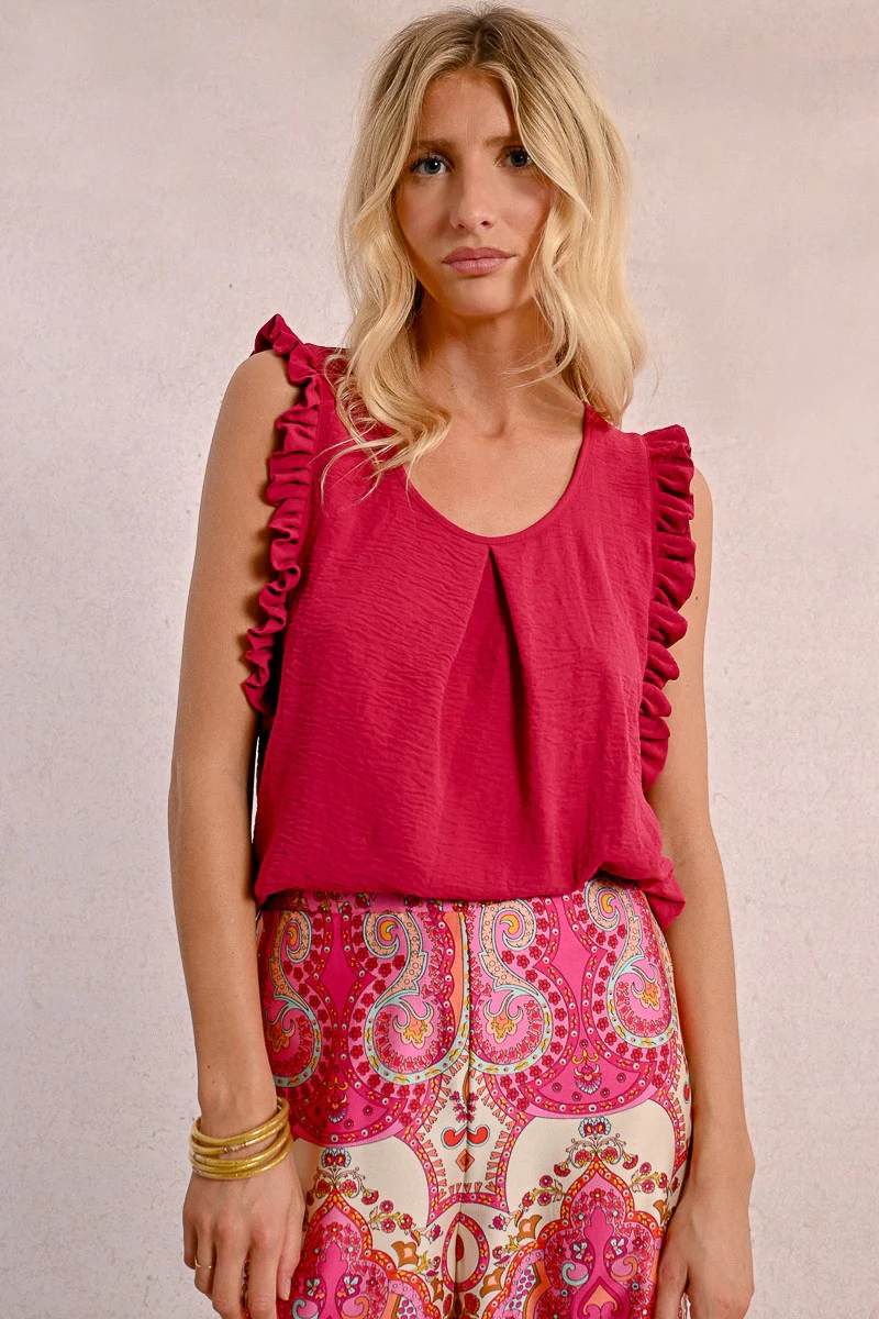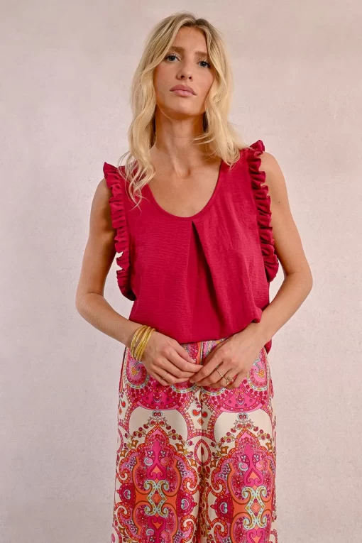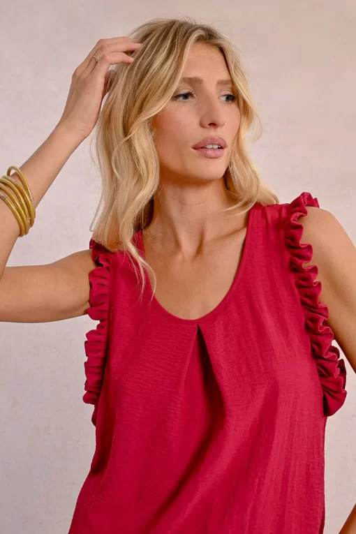 MOLLY BRACKEN Women’s Molly Bracken Top With Ruffled Sleeves | Raspberry